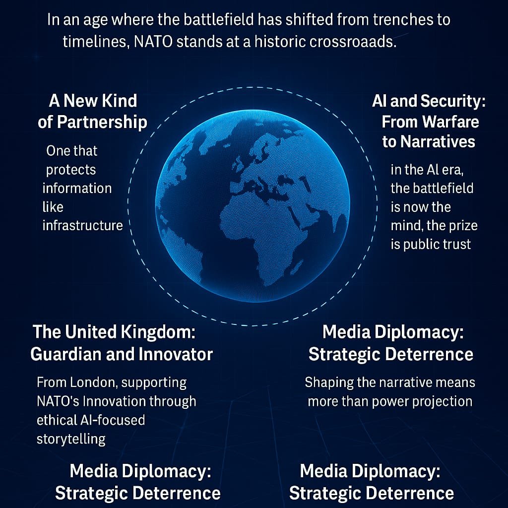 “السلام لم يعد ضعفاً… بل سرداً ذكياً، وثقة تبنى، وتحالفات جديدة”. من لندن نبني الجسر الاعلامي الاقوى بين الناتو والعالم العربي.”